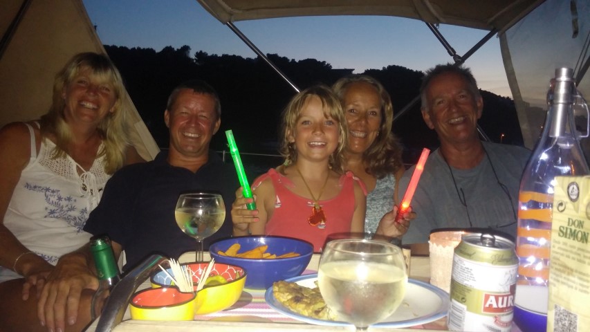 Addaya itself is another British hotspot. It seemed the only shop we found close by had lots of UK products at highly inflated prices but still being bought by lots of UK people. The bay was very pretty and extremely well protected. It was surrounded by a pine forest on the one side and a forbidden island on the other. A breeze was unheard of here and it is very hot and stuffy on board. Being down a river type entrance the water was a murky brown colour, not that inviting to swim in but Howard and the girls took great delight in skinny dipping on a regular basis. We had an evening spent with Duncan and Pat on Samji, singing along to rock songs and having a nice relaxing time.
