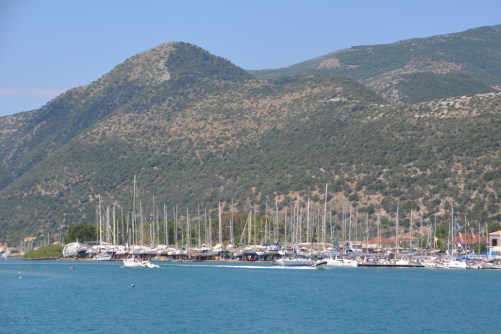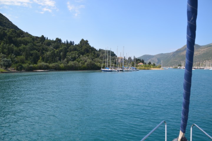 We were the first through the lock and headed down the canal into the Southern Ionian. It was so different with lovely weather, very hot and no wind. We arrived in a bay in Nidri which was stunning and was met by many friends. 7 boats we knew were in the anchorage and made us feel very welcome. CopyCat (Ronny and Karen), We-Dun-It (Dave and Vicki), Songbird (Ingma and Elvyra), Ula (Andy and Clare), Viking (Shelly and Andy), Miss Molly, Lady Eleanor (Emily and Luke) – stern2sailing and of course Cuffysark sailed in with us (Ian and Lorraine).