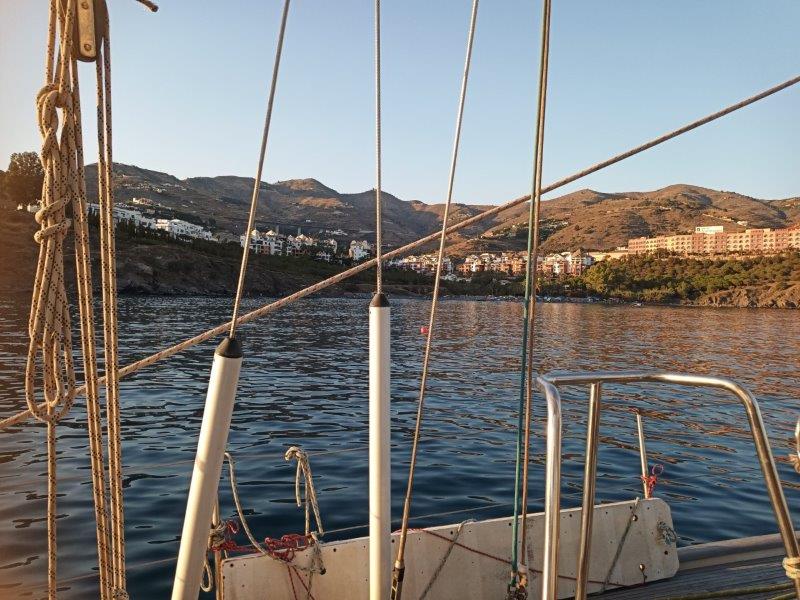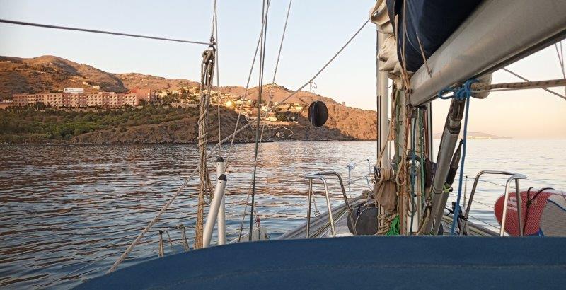So a short motor for me in the morning 21nm, to anchor off Valez, then the next day only 23nm to Benalmadena. A relief to have the first leg complete where I awaited for my good friends Reiner and Mike to join the adventure. I knew I had still a long way to go including dealing with the straights of Gibraltar, the Atlantic swell, Finnestair, Biscay and the Raz de Sein. The whole trip was very daunting and worrying for me. From the beginning I knew it wasn’t going to be easy and I many times I didn’t want to do it. I knew it would push me mentally and physically. I knew the boat is good and strong but anything can break at any moment. For me it was very hard.