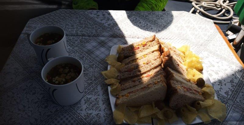 The next morning up early and back to the routine. Wind still on the nose but the sea was settled enough to make progress. A 2 day and 1 night before again we had to pull in as little progress was being made against heavy seas. The forecasts were very accurate we would push until the predicted winds came in and only then headed for a place nearby. Porta da Varzin was a small but lovely marina with very short pontoons to berth in. We got off the boat and I treated the crew to a well deserved meal out. It was delicious. Mike was keen on treating us to aperitif ( if that’s what its called but I think that’s before diner…never mind you get it) to finish off the night but we were so tired and knew we had to be early. We also nearly gate crashed a party that was happening on the quayside but decided to go back to the boat. Our fridge freezer was playing up so had to change pumps for the second time that evening. We didn’t want the food in the freezer to defrost. My super large portions of home made curry and Sheppards Pie were at risk…