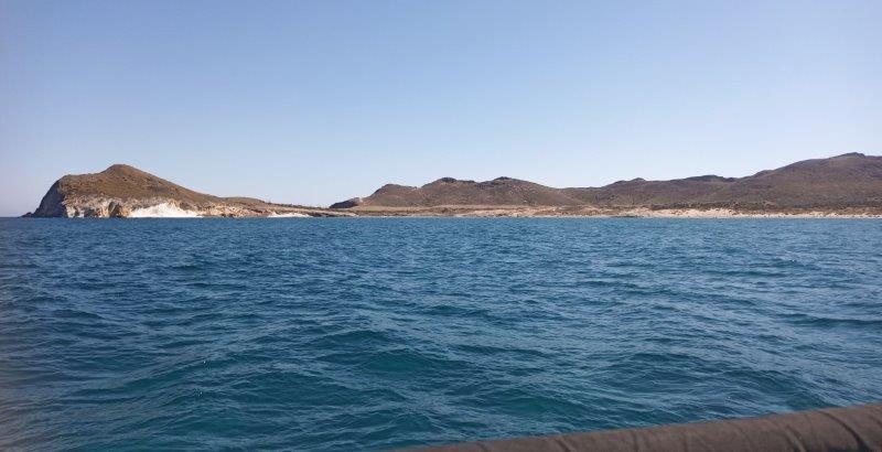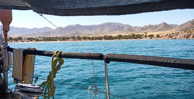 We only stayed the one night in Cartagena and with marinas fees being at the summer rate we decided to do a short trip the next day towards Malaga and be on anchor. We were making very good progress to make sure we could pick up the extra crew. I know too well its very easy for the weather to turn against you and blow the wrong way and also boat issues can stop you for weeks . So we left before the midday deadline of the marina and headed down the Spanish coast. We soon had a submarine come very close to us and it was an enjoyable motor sail. The next bay was stunning again being Cala Bardina, a place I hadn’t anchored before. It took a few attempts to get the anchor to set as there was a lot of weed but my brother managed to hit the 1 meter square of sand with the anchor and she held well. It was a beautiful evening with my brother playing guitar. Just paradise.